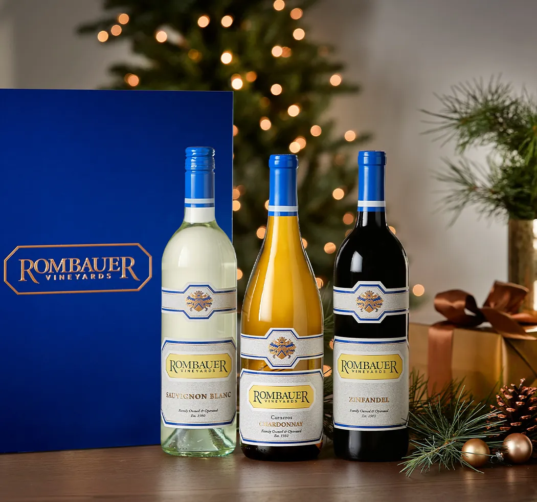 Our three gift set options will be thoughtfully presented in a signature Rombauer blue gift box with a personalized gift message.