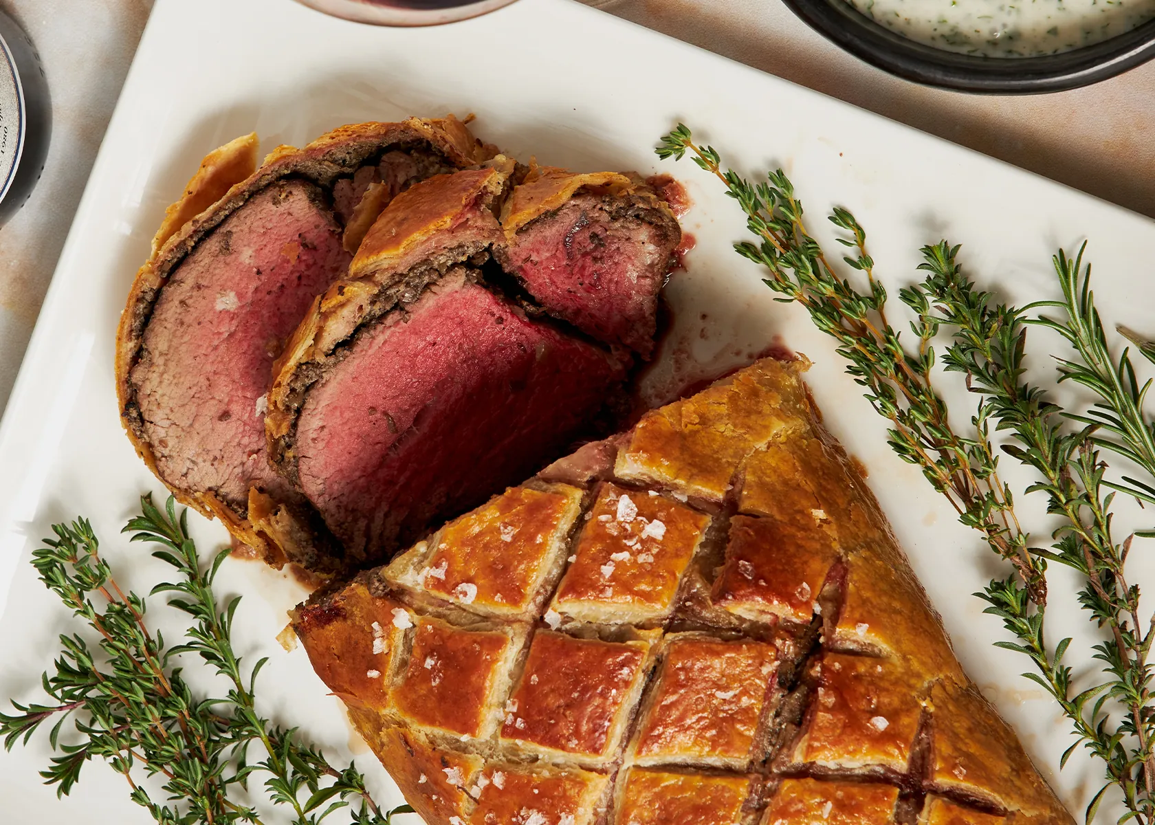 Cut 2 or 3 small evenly spaced neat holes in the top of the pastry to allow steam to escape and to allow you to insert a meat thermometer without breaking the crust. Bake until the crust is golden brown and a thermometer inserted in the thickest part of the roast registers 120° to 130°F for rare to medium rare. Start checking the temperature after 25 minutes. If the pastry begins to get too brown during baking, cover it loosely with foil. Remove the roast from the oven and let stand, uncovered for 15-20 minutes. Slice the roast at the table, using a serrated knife to cut 3/4-inch-thick slices. If desired, serve with Sauce Meurette.