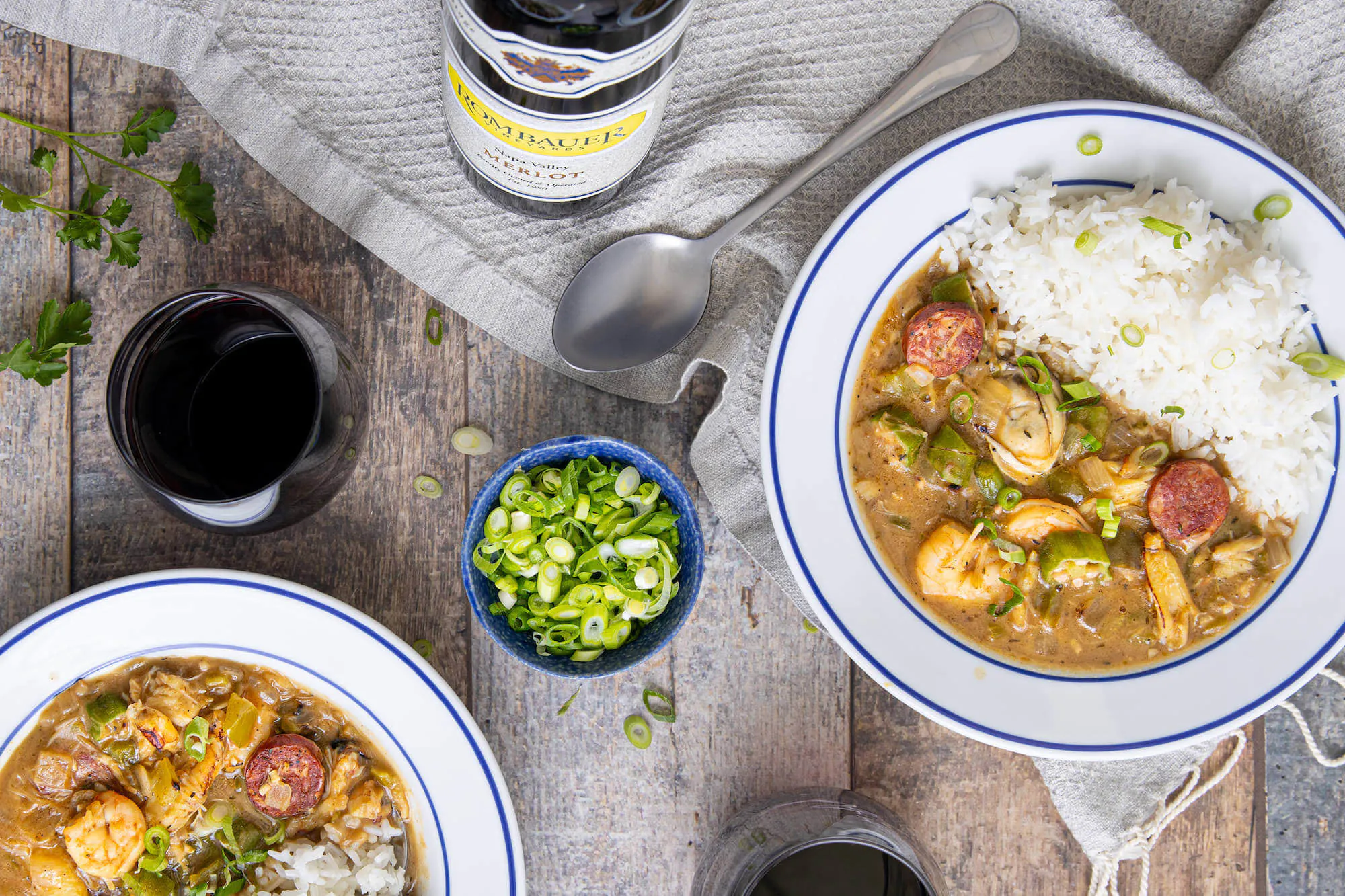 Serve over cooked jasmine rice. Sprinkle with chopped parsley and chopped green onion.
