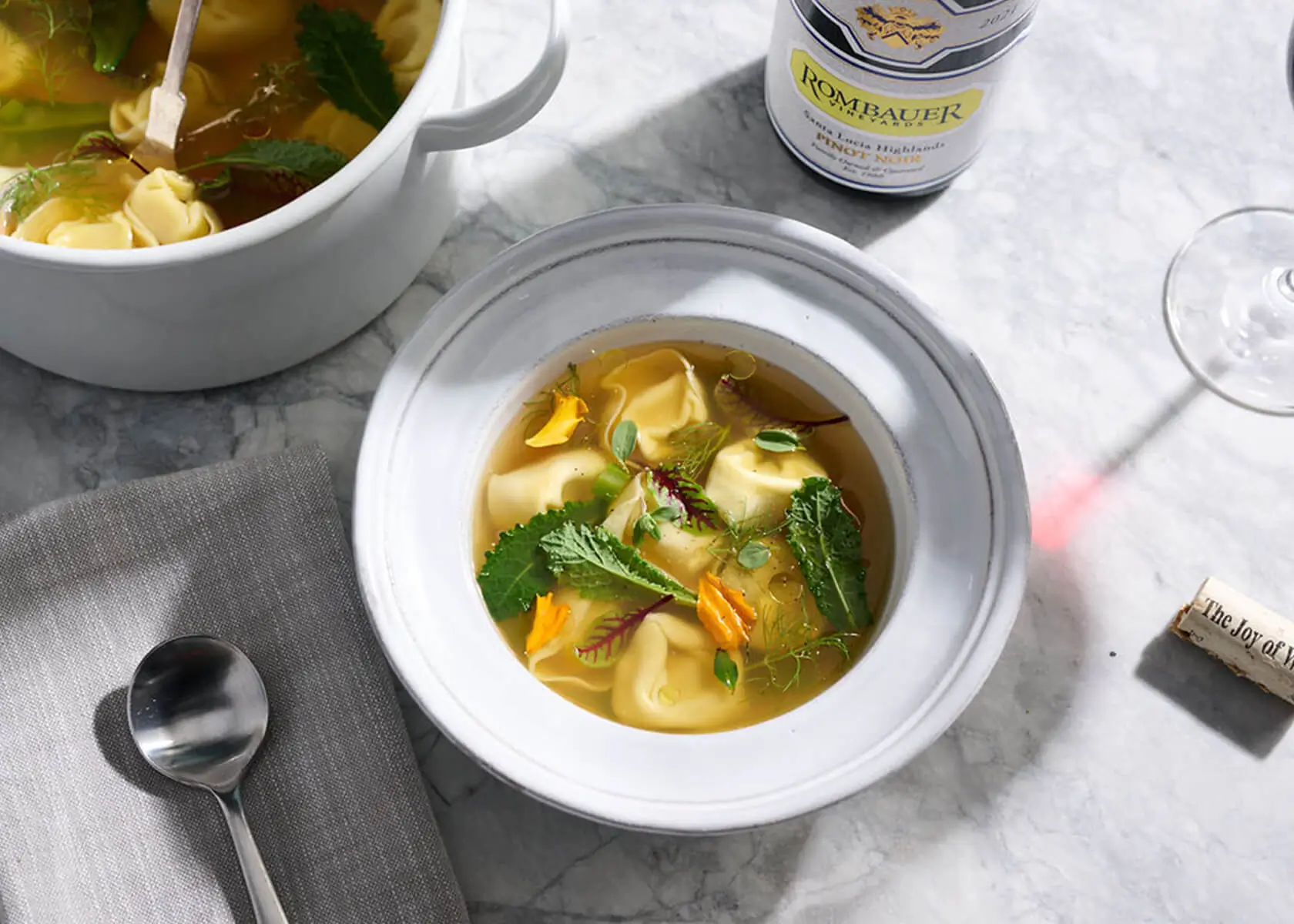 - When melted, add the celery, a shallot, onion, carrot, and garlic.